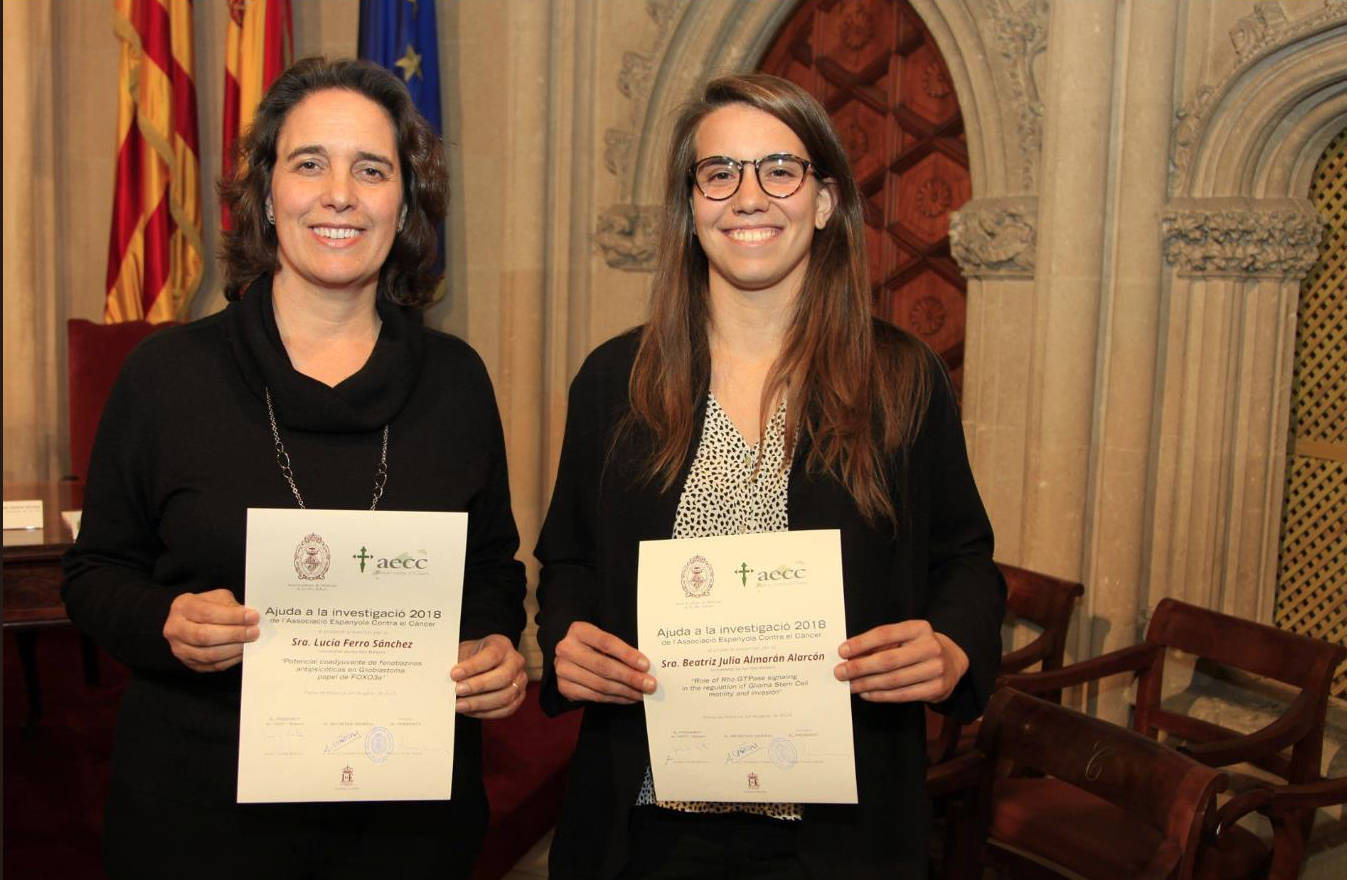 Dos investigadoras del grupo de Biología Celular del Cáncer del IdISBa galardonadas con las dos becas predoctorales en oncología de la Junta de Baleares de la AECC